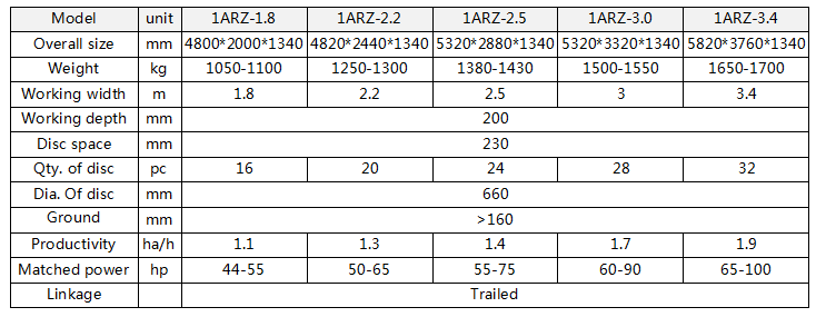 Light-duty Disc Harrow are suitable for pulverized and loosening clods after ploughing and for planning the land before sowing on cultivated land. The machines can make soil and fertilizer mix up, and clear away the stump of plants on light or medium soil and preparing seed bed for planting.