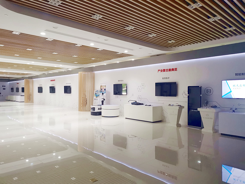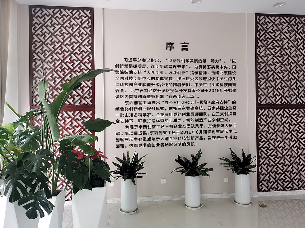 創(chuàng)客展廳位于中關(guān)村門頭溝科技園蓮石湖西路98號(hào)院7號(hào)樓石龍創(chuàng)新大廈一層,建筑面積1307.5平米。