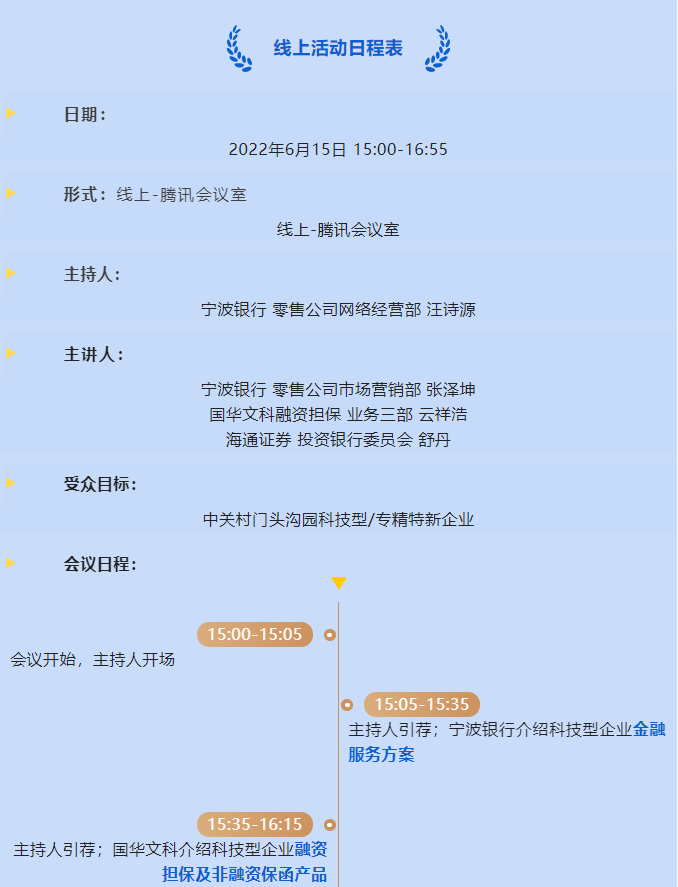 為創(chuàng)新銀政企對(duì)接平臺(tái),引導(dǎo)金融機(jī)構(gòu)和有融資需求的企業(yè)“面對(duì)面、零距離”對(duì)接,精準(zhǔn)破解中小微企業(yè)融資難、融資貴、融資慢的問(wèn)題,讓更多金融“活水”高效快捷注入到實(shí)體經(jīng)濟(jì)中,6月15日下午3點(diǎn),中關(guān)村門(mén)頭溝園金融超市將推出最新一期“政策解讀+創(chuàng)新產(chǎn)品推介”的線上活動(dòng)——探索多元化融資路徑。